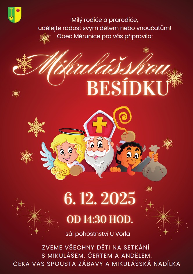 Obec Měrunice pořádá setkání pro děti s Mikulášem, čertem a andělem.
